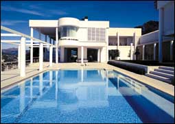 تنشأ أحواض السباحة بجوار المنزل لتعطي خصوصية للسباحة والمتعة الشخصية التي يشعر بها المرء في مسبح مستقل، ومع تطور هندسة البناء والديكور أخذت هذه المسابح أشكالا وديكورات تفوق في جمالها الغرض التي انشئت من أجله، فهي متعة للنظر، وراحة في جوار المياه الرقراقة، حيث يتم الأعتناء بالشرفات المطلة على المسبح، وبالمصاطب المحيطة به فتزود بالأثاث المناسبة. من كراسي للراحة والاستجمام وأنواع الطاولات ........