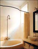 في هذا الحمام الذي تم تصميم بنائه الداخلي وفق ديكورات أنيقة تتوفر كل عناصرالروعة والجمال، فالدوش الأنيق يتوسط الحوض المدهش بجماله يبدو وكأنه حفر دقيق في صخرة كبيرة صنع منها الحوض والرفوف ........