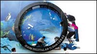 * عاملون يقومون بتركيب نموذج لعدسة تصوير ضخمة على لوحة إعلانات في مدينة شنغهاي بالصين.