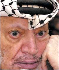 رجال الأمن الفلسطيني يحيطون بجثمان الزعيم الفلسطيني ياسر عرفات