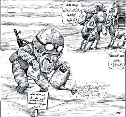 عن أهمية الحرب الإعلامية في الصراع الدائر الآن في العراق وعن وجود معارك يسقط فيها قتلى أمريكيون لا يتم تسليط الضوء عليها من وسائل الإعلام العالمية، نشرت (كريستيان ساينس مونيتور) تقريرا يسلط الضوء على أحد عناصر المقاومة والمختص برصد الضحايا الأمريكيين بعدسته والاقتراب من الدبابات المشتعلة لتصويرها.