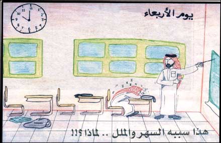بعض طلاب الدراسية الليلية والمسائية يعانون من ظاهرة تنتشر بين صفوفهم بشكل واضح، وهي النوم نهارا والسهر ليلا، مما يترك آثاره السلبية على حياتهم الاجتماعية وحالتهم الصحية. المطلوب الالتفات لهؤلاء، فوزارتا العمل والشؤون الاجتماعية مطالبتان بحصر عددية هؤلاء والتخطيط لاستيعاب جهدهم ووقتهم نهارا، وليت النشاط الطلابي يبادر بالتنسيق مع بعض المؤسسات الخيرية لتعهد هؤلاء بالتواصل معهم عبر رسائل الجوال ........