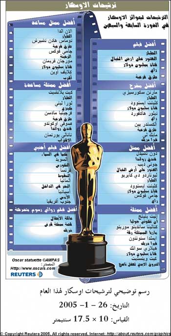 تظل جوائز الأوسكار الأمريكية هي الأشهر على الإطلاق بين جوائز ومهرجانات العالم السينمائية رغم تعددها وتنوعها في العالم. ولا عجب في ذلك، إذ لا تزال تسيطر السينما الأمريكية على أسواق الفن السابع في العالم أجمع كما يظل نجوم هذا الفن ونجماته عالقين في أذهان جماهير هذا الفن دون منازع. ولعل هذا ما يجعل جماهير السينما في العالم يرتقبون هذا الحدث ونتائجه بترقب كبير ربما أكثر من ارتقابهم لنتائج ........