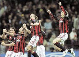 وفاز ميلانو على مانشستر يونايتد 5-3 في مجموع اللقاءين في الدور قبل النهائي ليكرر مشهد نهائي 2005 في البطولة والذي فاز به ليفربول بركلات الترجيح بعد ان حول تأخره بثلاثة اهداف للاشيء الى التعادل 3-3 .