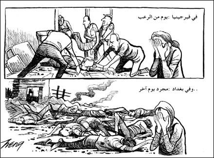 الشاشات تنزف دماً يكاد المشاهد لا يستثني شاشة منها، فمناظر الدماء أصبحت وجبة بصرية يومية، وتكرارها جعلها تفقد قدرتها على استفزاز المشاعر.
