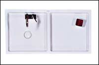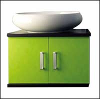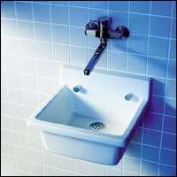 * نوع مميز من المغاسل المنفردة مكون من حوض واحد صغير مربع الشكل مزود بأحد الصنابير المعدنية.