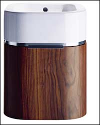 * نموذج من المغاسل التي تجمع بين الكلاسيكية والعصرية، إذ يبدو أحد أجزائها مربع الشكل والجزء الآخر دائرياً مزوداً بمصفاة مياه.