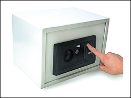 * من الآن فصاعداً ليس عليك أن تقلق بشأن فقدانك أو نسيانك للرقم السري الخاص بخزانتك الشخصية ولا على أشيائك الثمينة من الضياع في حال عرف أحد بأرقام التسلسل الخاصة بالخزنة؛ فهذه الخزانة كما هو واضح من الصورة تعتمد على حفظ بصمتك الشخصية وتفتح بلمسة إصبع حيث تستطيع تخزين بصمة إصبعك الخاصة بواسطة برنامج مزود