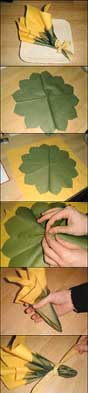 تحتاج الطاولات بين الحين والآخر إلى تزويدها بديكورات جميلة من أغطية ومزهريات وباقات ورد تجعل منها مادة لها أهميتها في صنع الجمال في الغرفة أو الصالون. نحتاج في هذا العمل إلى منشفة مربعة الشكل صغيرة الحجم ملونة باللون الأصفر ومنشفة خضراء اللون على شكل زهرة أصغر حجما من الأولى ووشاح أصفر اللون.