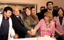 فريق العمل في المسلسل التلفزيوني «لم تنس أنها امرأة» يحتفلون بانطلاقة العمل وهم من اليسار: سمير صبري، أحمد وفيق ونرمين الفقي وسميرة عبد العزيز وآنجي شرف. ( إي.بي.أيه)........