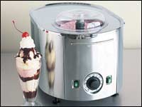 * صممت هذه الآلة لتصنيع الآيس كريم والعصير المثلج والمشروبات المجمدة الأخرى. وهي تنتج حوالي لتر ونصف اللتر من الآيس كريم في فترة لا تزيد على ثلاثين دقيقة. وهي مجهزة بضاغط للتجميد يمكنك من تصنيع أنواع مختلفة من المرطبات المنزلية المجمدة بسرعة عالية. وهناك مؤقت يعمل مع زر الخلط والتجميد لجعل تشغيلها أكثر سهولة. وتحتوي الآلة ........