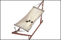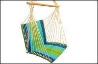 * كرسي معلق على شكل مرجيحة مكونة من خيوط قطنية وبولستر بألوان متعددة منها الأصفر والأزرق.