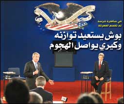 في مناظرة شرسة لم تحسم المعركة بوش يستعيد توازنه وكيري يواصل الهجوم * إعداد إسلام السعدني |