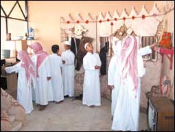 وهل تصدق بأن صور هذه القرية هي في إحدى مدارسنا؟ نحن نقول لك: إن هذه القرية هي واحدة من الإنتاج الفني في مجمع الملك سعود التعليمي بالرياض، وهو شاهد على أن العمل الفني في المدارس بدأ يتعدى التشكيل إلى بناء الأقسام والمجسمات. ........