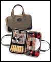 * يمكنك تناول طعامك الشهي في أي مكان باقتنائك لهذه الحقيبة التي تحوي كل ما تحتاج إليه لتناول وجبة شهية في الهواء الطلق، سواء كنت في متنزه أو مزرعة أو غير ذلك، فهذه الحقيبة تحوي لوح تقطيع وستة صحون وسكيناً للجبن ومناديل من القماش وأقداح للشرب، مع غطاء مائدة من القماش بمساحة 36 قدما مع عبوتين لرش الملح والفلفل.