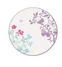 * مرآة على شكل لوحة طبيعية اجتمع فيها اللون البنفسجي مع اللونين الزهري والأخضر، ومقتبسات أخرى من الفراشات بهية الألوان.