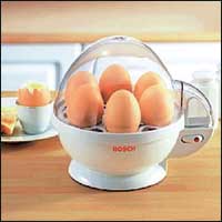 * تستطيع هذه الآلة الكهربائية أن تقوم بسلق بيضة الى سبع بيضات بطريقة سهلة ودقيقة. وهي تقوم بكل شيء يهدف الى تحقيق راحتك بدءاً من قياس كمية الماء الضرورية للعملية الى خرق كل قشرة بيضة للتأكد من مدى نضجها. ويمكنك أن تقوم بإعداد نظام السلق بين الخفيف والقوي وبدرجات متعددة بينهما وعندما يتم سلق البيض ........