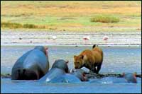 * الأُسُود والنمور والضباع والكلاب البرية والتماسيح من أبرز أعداء فرس النهر