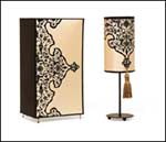 * مصباح زاخر بديكوره وألوانه التي توزع على السطح حيث نجد شجرة وزهرة على تصميم مستطيل أو دائري.