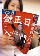 * موظفة يابانية تقرأ كتاباً كوميدياً بمكتبها في طوكيو عن الزعيم الكوري الشمالي كيم يونج إيل. وقد بيع من هذا الكتاب في اليابان 000 ،300 نسخة. (أ.ف.ب)........