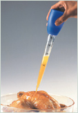 * صمم هذا الجهاز لرش الصلصة وجميع أنواع السوائل على الطبخ بعد النضج أو قبله مكون من مادة السليكون المقاوم لدرجات الحرارة حتى 300 درجة، يحتوي على جزء مطاطي يسمح بامتصاص السوائل من الإناء ومن ثم رشها على الطبخ.