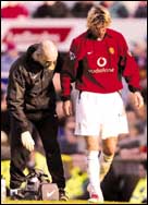 بعد هزيمة مانشيستر يونايتد من ارسنال بنتيجة قوامها 20 ضمن بطولة كأس الاتحاد الإنجليزي خرج السير أليكس فيرغسون مدرب المانشيستر يونايتد غاضبا من أرض الملعب وكردة فعل غير طبيعية قام بركل حذاء رياضي ملقى على الأرض في غرفة الملابس بقوة ليصيب النجم الأول لمانشيستر وكابتن المنتخب الإنجليزي ديفيد بيكام في وجهه بإصابة بالغة احتاجت إلى خياطة غرزتين لتغطية الجرح فوق حاجب اللاعب مما أثار الإعلام ........