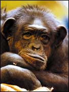 * قرد شمبانزي يبدو وكأنه يفكر في مصيره بعد ان قررت حديقة الحيوانات في برلين التخلص من عدد من القرود لصالح حديقة حيوانات صينية. (رويترز)........