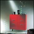 * خزانة حمراء اللون يتناغم لونها إلى حدٍ بعيد مع ألوان أثاث المكتبة التي غالباً ما تكون سوداء وسط طلاء رمادي يغطي جدران المنزل.