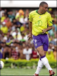 اصطادت عدسة الكاميرا هذه اللقطة الطريفة لمهاجم منتخب البرازيل رونالدو أثناء مباراته مع منتخب بلاده، ومن الصورة يتبين لنا أن رونالدو فضل رقصة بلده الشعبية «السامبا» على لعب كرة القدم........