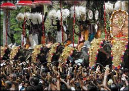 مجموعة من الهنود يحتفلون باحدي المناسبات الثقافية في بلدة كيرلا بجنوب الهند ويشارك عدد كبير من كافة أرجاء الهند في هذه المناسبة (رويترز)........