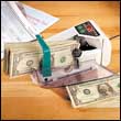 * بإمكان هذا الجهاز النقَّال أن يعدَّ النقود الورقية والفواتير بسرعة تبلغ عشر ورقات في الثانية؛ مما يسهِّل عليك العملية ويسرِّعها إلى حد كبير.