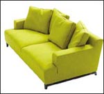 * نموذج من المقاعد الأنيقة بمظهرها الخارجي وبطريقة تنجيدها التي دعمت بعناصر الراحة من وسائد وأغطية.