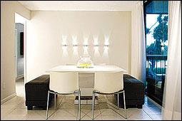 قد لا يفيد تنوع الألوان من أبيض وأزرق وأسود في أجواء المنزل بقدر الترتيب الداخلي الذي ينظم المكونات... ففي منزل اختير له الطراز البسيط في التصاميم، تعطى الأهمية للتصاميم التي تتوحد في الطابع العام وتتناغم في تأثيراتها حيث يفيد في هذه الحالة الأثاث بنماذجه العصرية التي تمتاز بالخفة واللون الواحد والتصميم المختلف والانفتاح، وكذلك الأغطية والكسوة التي تستخدم كأرضيات