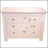 * خزانة بهية بلونها حيث الأبيض يتخلله صور لفراشة تتوزع على الأبواب، تضفي جمالا خاصا عليها.