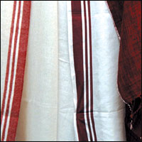 *غطاء من ألوان طولية مكونة من خطوط حمراء وبنية تلف محيطه.