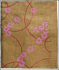 *غطاء من اللون الزهري حيث توزع على سطحه زهور من نفس اللون.