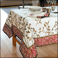 * ألوان ربيعية كونت سطح هذا الغطاء الذي سيغطي مائدة الطعام.