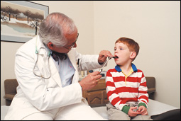 يعتبر التهاب اللوزتين من أكثر الأمراض التي تصيب الأطفال بين سن الثانية والسادسة، وكثيراً ما يصاحبه التهاب الناميات (الزوائد الأنفية). وتتشابه أعراض التهاب اللوزتين مع أعراض الإصابة بالبرد والزكام والتهاب البلعوم والحنجرة، حيث يشكو الطفل المصاب من: ارتفاع شديد في درجة الحرارة، قشعريرة وصداع ووهن، آلام في الظهر وتشنج في الرقبة، الشعور بالغثيان، ألم شديد في الحلق وصعوبة في البلع وفقدان الشهية