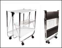 * سلة طعام تعلوها طاولة معدنية تتحرك على أربع عجلات، مصنوعة من معدن الألمنيوم.