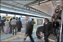 ومن المتوقع أن يصل طول خطوط قطار الأنفاق في العاصمة السياسية للهند إلى 62 كليومتراً في ديسمبر 2005 بسعة 2 مليون راكب يومياً. (رويترز)........