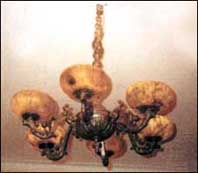 * ثريا معلقة . زاهية الألوان من الطراز القديم . يتضح ذلك من خلال النقوش والرسوم على الأجزاء المعدنية والزجاجية منها. ولعل جمالها يكمن في قدمها ومحافظتها على رونقها. مكونة من ستة مصابيح جميلة. وسلسلة برونزية الشكل والتكوين. تستخدم في إنارة الصالون . يبلغ ارتفاعها 60 سم و كذلك عرضها . يحرص على هذه النوعية من المصابيح و الثريات . المهتمون بالديكور القديم. والذين يودون التمازج بين القديم والجديد . لإيجاد جو من الأناقة العصرية.