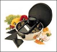 * فرامة جيدة للسلطة عملية وسهلة الاستعمال، تعمل بطريقة مذهلة، تسطيع أن تقدم سبعة أنواع مختلفة من السلطة، وذلك نتيجة احتوائها على سكاكين الفرام المدرجة بسبع درجات، تحدد حجم تقطيع الخضار بطريقة منتظمة كما أنها تستطيع تقطيع الجبن والبطاطا وكافة أنواع الخضار. تتكون من زر التشغيل، وأربعة مصابيح تشير إلى درجات تقطيع السلطة.