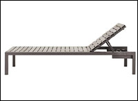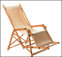 *كرسي مصنوع من قطع الخشب المرصوفة بجانب بعضها البعض يمكن رفع مقدمته بواسطة رافعة من الألمنيوم.
