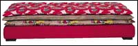 * مقعد منجد بطريقة أنيقة يغطيه مفرش من اللون الأحمر (العنابي) أنيق ويناسب الشرفات وإطلالة المسابح المنزلية.