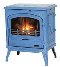 *مدفئة كلاسيكية التصميم وقديمة الصنع تعمل على الخشب و تتمتع بجمال أخاذ يعكسه منظر إضاءة المدفئة عبر الزجاج.