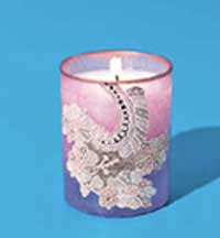 * نموذج من الشموع الأنيقة، على سطحها الخارج أزهار، تبعث روائح عطرية في المكان.