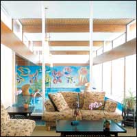 كل شيء في هذا الصالون يعبر عن الراحة، وللجوانب الأخرى أهمية ثانوية كالطراز الجديد والديكور، ويبدو ذلك واضحاً من خلال الأثاث الذي يشكل جمالية الصالون، ويسعى المصمم من خلال إعطاء الكثير من الأمثلة للوصول إلى هدفه في تأمين الراحة التي مصدرها الألوان والأثاث.. ويعد مصمم الأثاث و الديكور في المنزل عمله داخل المنزل بصورة تقدر فيها الألوان، التي شكلت أهم عنصر جمالي في المكان، فهي ذات طابع هندي ........