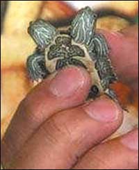 وقد صرَّح مالكها فيديريكو إيرازوريز لمجلة Las Ultimas Noticias قائلاً: (لهذه السلحفاة رأسان بمخين منفصلين، ولكن الأيسر أقوى ويسيطر على الآخر)، مضيفاً أن باقي أعضاء السلحفاة طبيعية ما عدا الرأس. (ananova.com)........