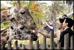 الأمير ناروهيتو ولي العهد الياباني يشاهد زوجته الأميرة ماساكو وهي تطعم الزرافات في حديقة الحيوانات بمدينة سيدني وذلك خلال جولة سياحية استمرت لثلاثة أيام.