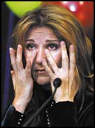 المطربة الكندية الشهيرة سيلين ديون تبكي خلال اللقاء الصحفى الذي عقدته في مستشفى سانت جاستن للأطفال بمدينة مونتريال الكندية سيلين وزوجها رينه قررا رعاية مسؤولية هذا المستشفى واستمرار دعمه بالمال بهدف مسح دموع الأطفال المرضى وزرع الابتسامة على وجوههم بعد علاجهم. (أ.ف.ب)........